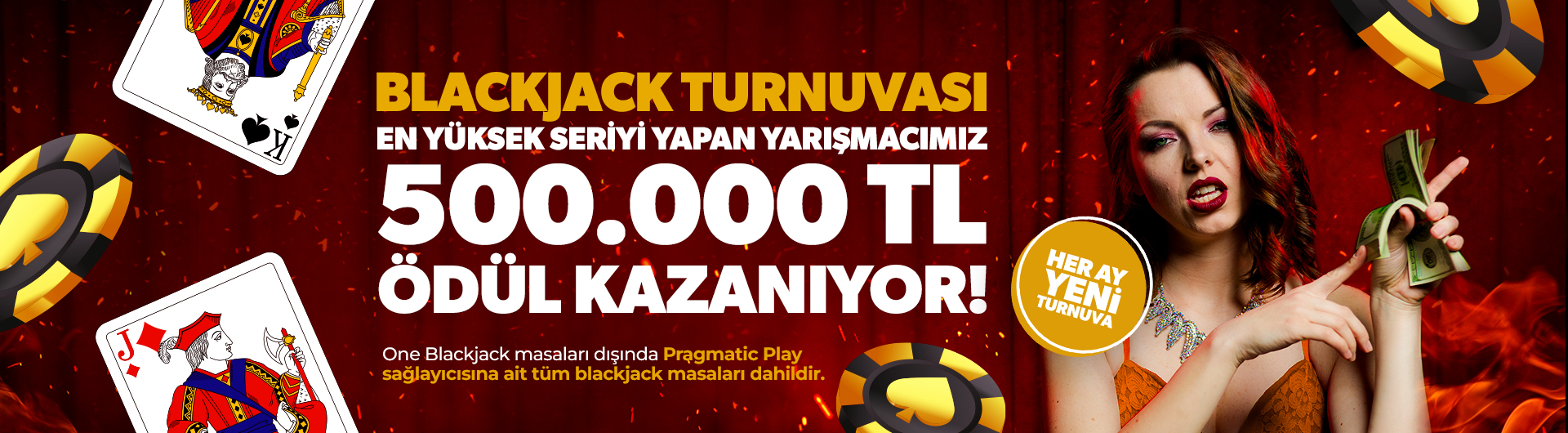 2. Turnuvaya, One Blackjack masaları hariç Pragmatic Play sağlayıcısına ait tüm blackjack masaları dahildir.
