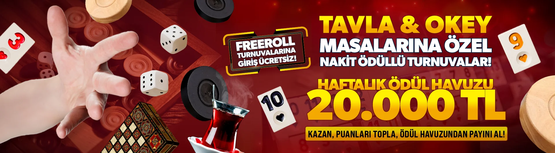 20.30 | Maxi Freeroll Okey Ödül: 500 TL |